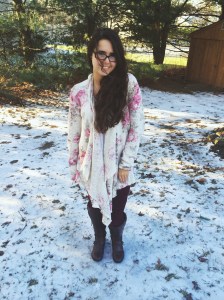 This floral cardigan makes you think about Spring on a cold and windy day!